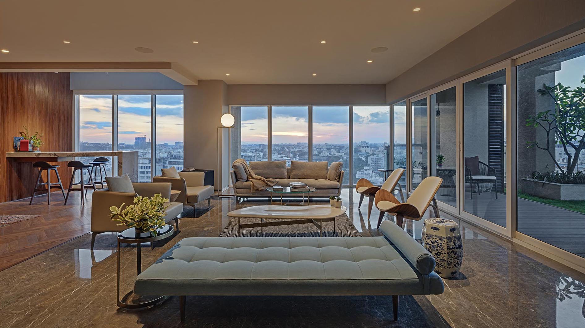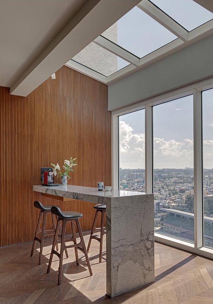 This sky-bound home introduces high-rise living as a dialogue between metropolitan panoramas and intimate family rituals.
